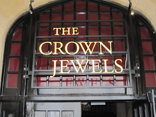 The building below holds the Crown Jewels….which consists of crowns, scepters, rings, swords, robes, and other ceremonial objects….most made from gold. This royal collection is displayed for the 2+ million people who visit the Tower each year.